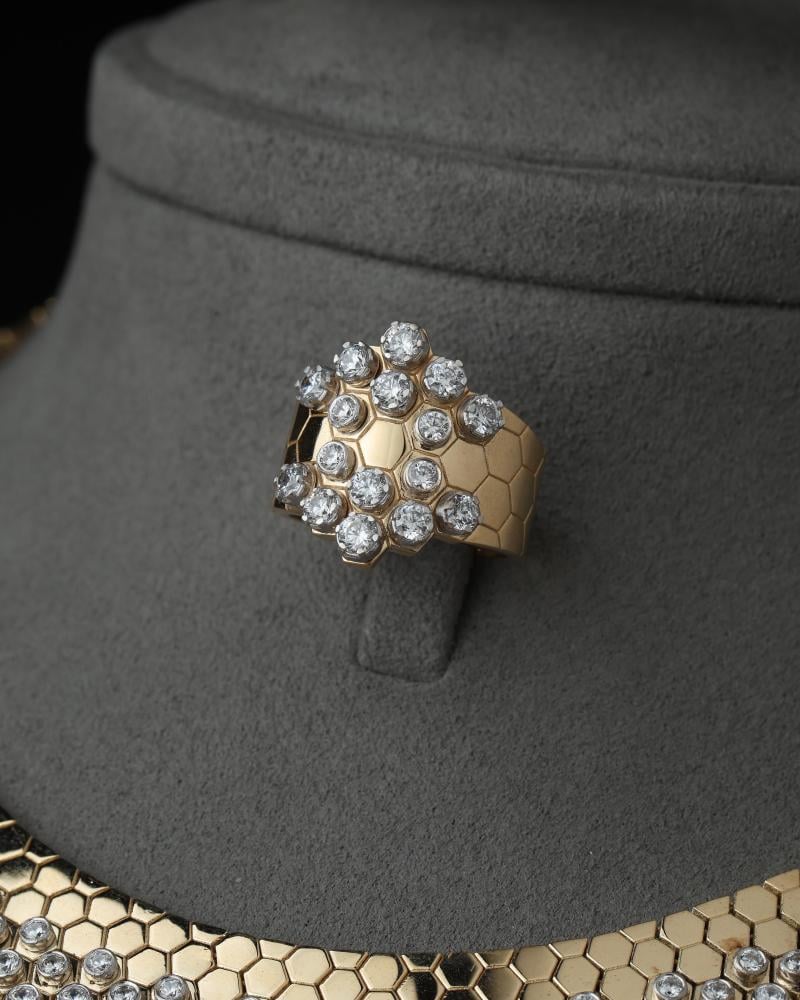 أضف لمسة من الأناقة والتألق إلى إطلالتك مع طقم الذهب الفاخر. يتكون نصف الطقم من مجموعة مميزة من المجوهرات المصنوعة من الذهب عيار 18، والتي تتميز بتصميمها الفريد والراقي.