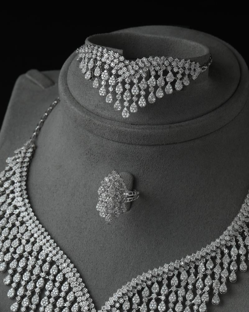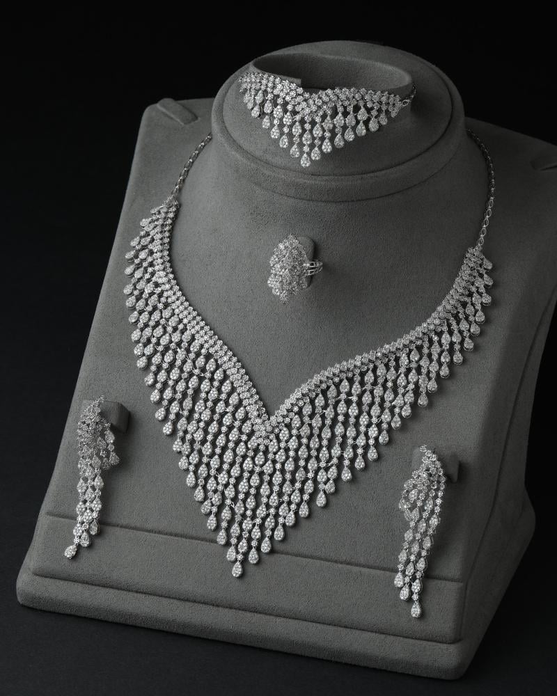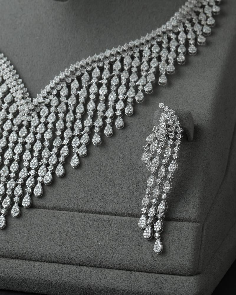 ✨ تصميم فخم ومميز بأحجار متدلية تُضفي فخامة استثنائية وإشراقة ملكية لا تُقاوم